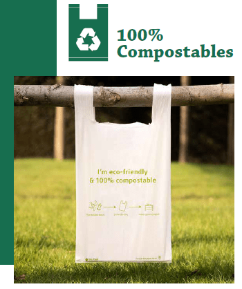 Bolsas compostables/biodegradables, fabricadas en un 100% con bioplásticos de origen de maíz, que entregan una solución con bajo impacto ambiental, que resuelve problemas específicos en el área de embalaje, servicio de comida, y recolección de residuos. Los bioplásticos usados en la fabricación de bolsas, cuentan con certificaciones “Ok Compost Industrial” y “OK Compost Home” realizadas en Europa, y con certificaciones de producto terminado, a nivel nacional, realizados por el Dictuc. Hemos logrado desarrollar y fabricar bolsas compostables desde 30 cm has 100 cm ancho, con espesores desde 0.03 mm has 0.100 mm. Las fabricaciones de este producto, son contra pedido, según la solicitud y uso de cada cliente, incluyendo servicios de impresión y troquelado.